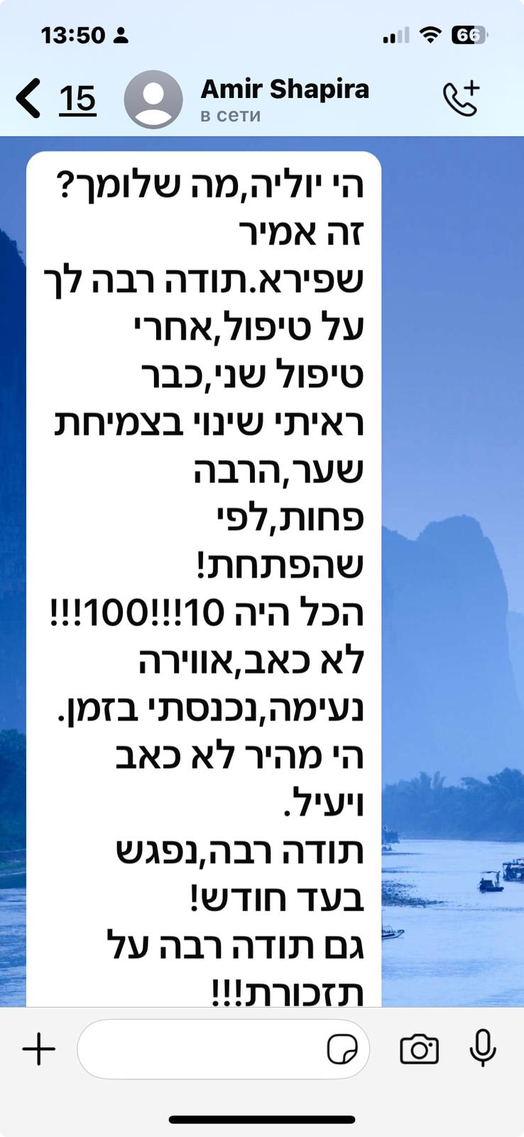 יוליה טבצניק היא מומחית להסרת שיער בלייזר עם ניסיון רב שנים בתחום. אנו משתמשים בטכנולוגיות המתקדמות ביותר (גלי דיאודי) להבטחת תוצאות מרשימות וללא כאב. אנו מתאימים את הטיפול באופן אישי לכל לקוח/ה, תוך מתן יחס אישי ושירות מקצועי. אם את/ה מחפש/ת פתרון יעיל, בטוח ומהיר להסרת שיער – את/ה במקום הנכון!